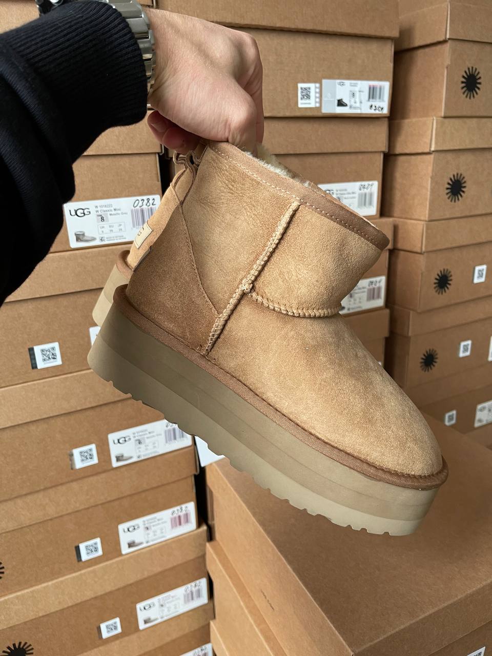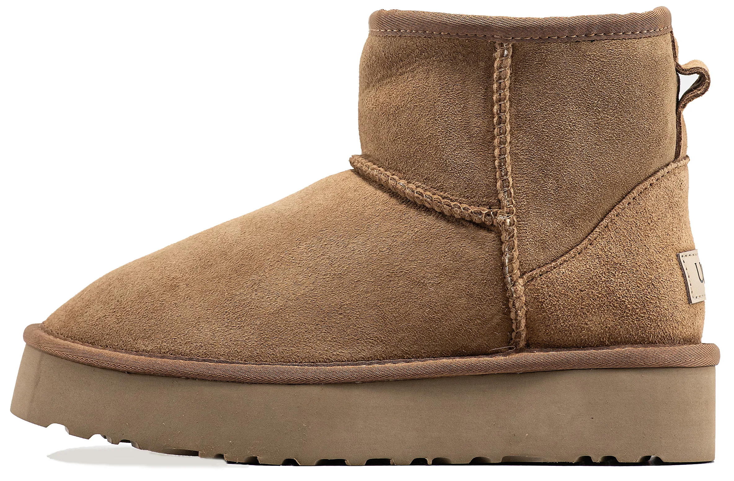 UGG Classic Mini Platform Chestnut — это женские ботинки, которые сочетают в себе традиционный уют и современный стиль. Модель выполнена из замши, что придает ей элегантности. Внутри ботинок мягкая подкладка из овечьей шерсти. Подошва с качественным протектором обеспечит хорошее сцепление и долговечность, делая эти ботинки надежными для повседневной носки в холодную погоду.