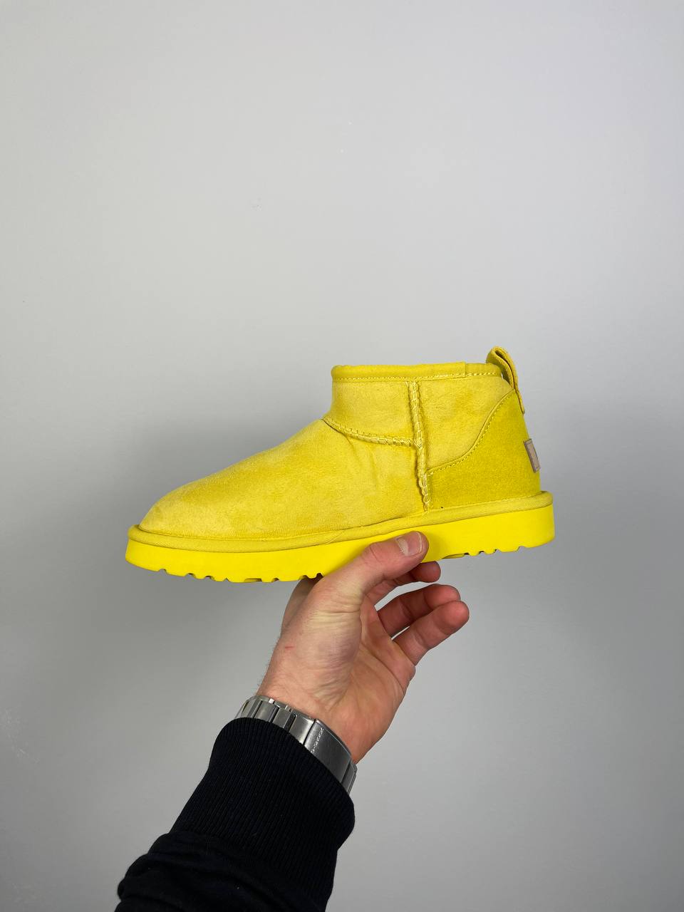 UGG Classic Ultra Mini Boot Canary Yellow — это женские ботинки, которые сочетают в себе традиционный уют и современный стиль. Модель выполнена из замши, что придает ей элегантности. Внутри ботинок мягкая подкладка из овечьей шерсти. Подошва с качественным протектором обеспечит хорошее сцепление и долговечность, делая эти ботинки надежными для повседневной носки в холодную погоду.