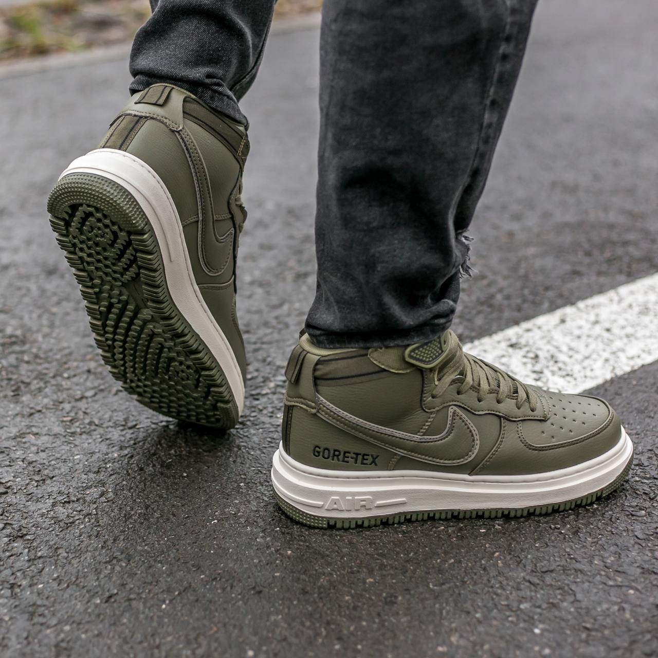 Кроссовки Nike Air Force 1 High Gore-Tex Boot “Medium Olive” отлично подойдут для повседневного ношения в холодную погоду.