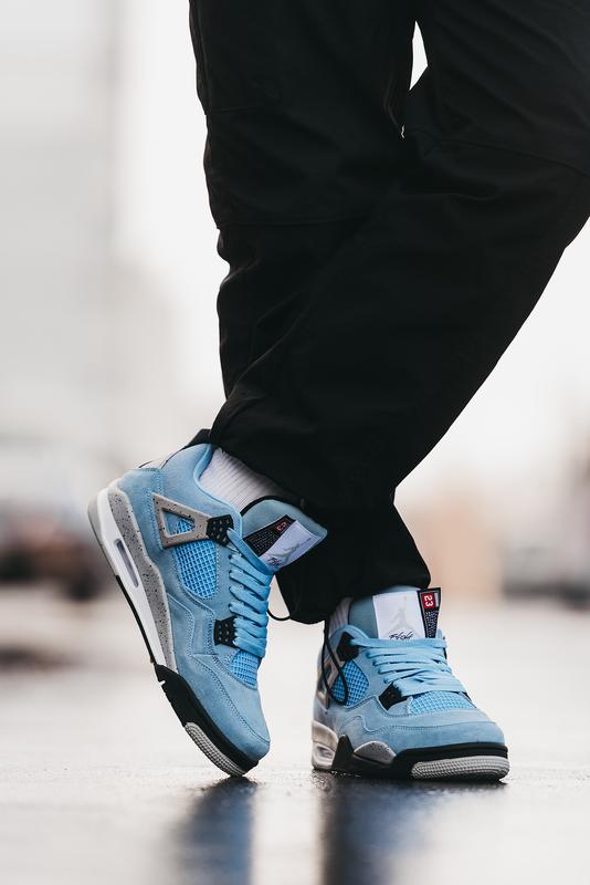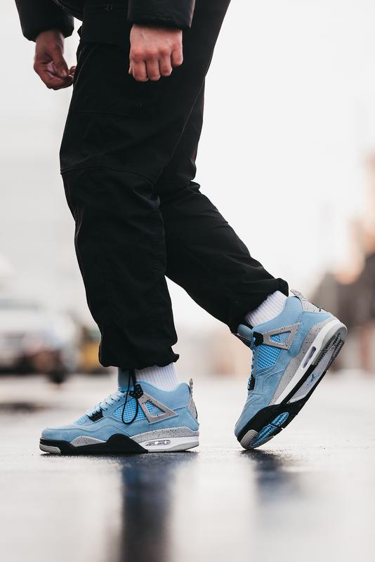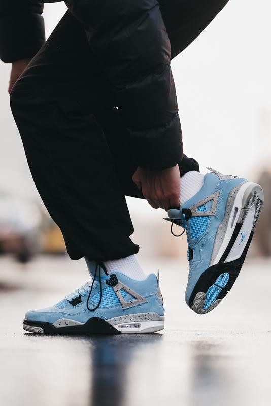 Кроссовки Nike Air Jordan 4 Retro “University Blue” легендарная обувь для игры в баскетбол, которую все чаще можно встретить на улице. Модель давно перестала быть чисто спортивной и все больше людей используют ее как повседневную. Верх выполнен из нубука, подошва резиновая с технологией Air, для повышения комфорта.