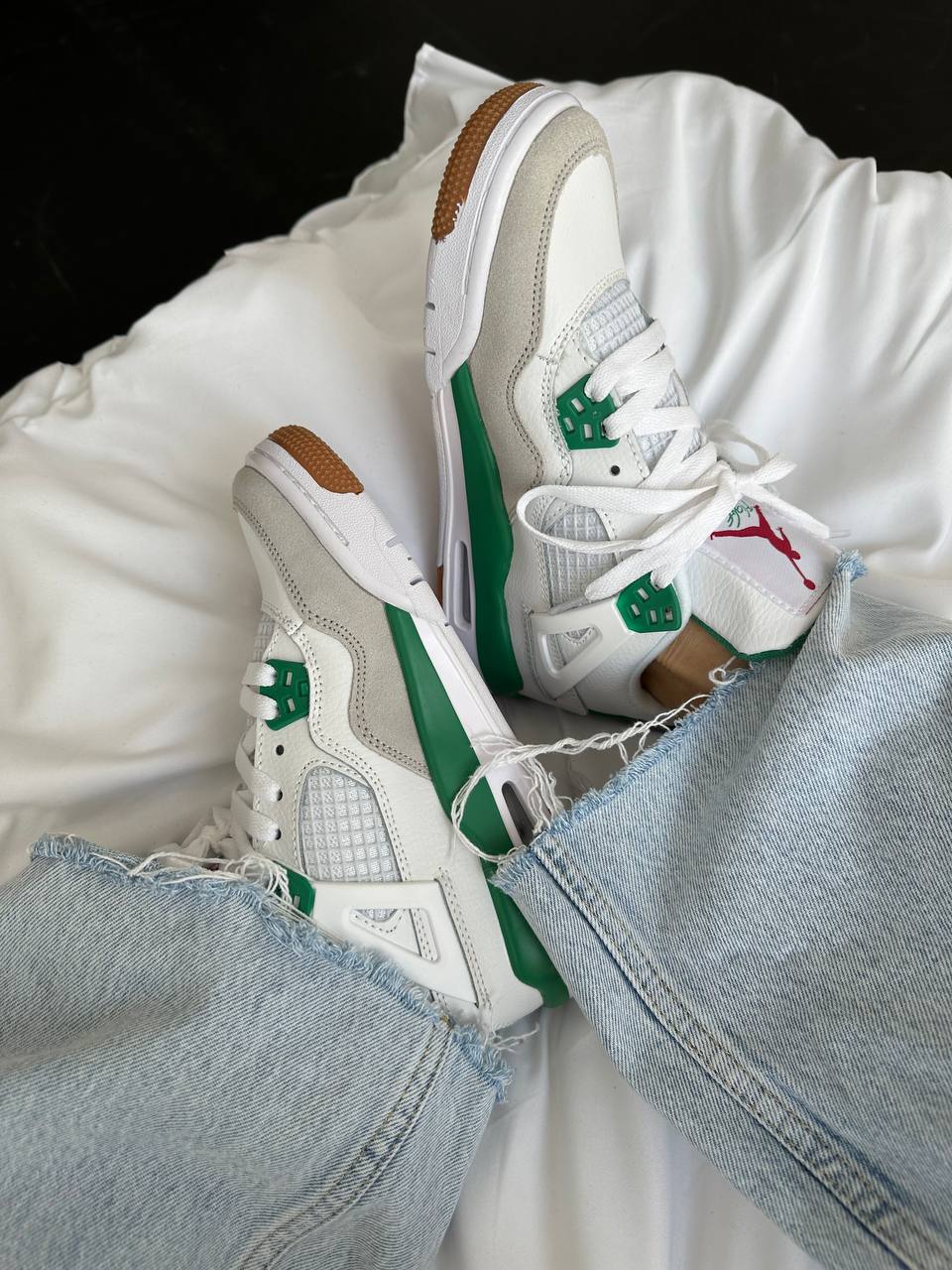 Кроссовки Nike Air Jordan 4 Retro x SB “Pine Green” легендарная обувь для игры в баскетбол, которую все чаще можно встретить на улице. Модель давно перестала быть чисто спортивной и все больше людей используют ее как повседневную. Верх выполнен из кожи, подошва резиновая с технологией Air, для повышения комфорта.