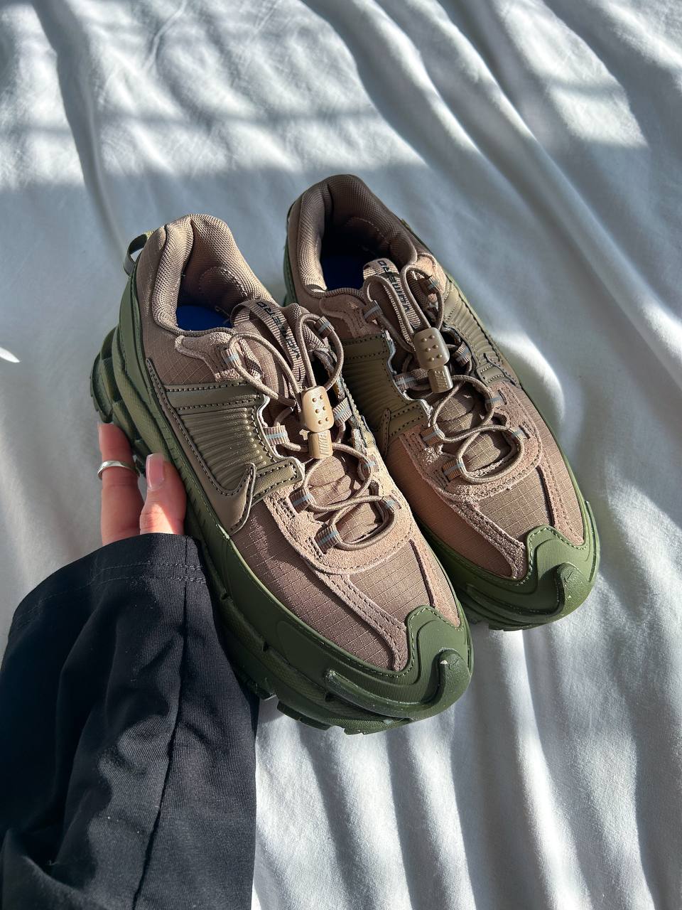Nike Air Zoom Vomero Roam Mink Brown Medium Olive — это усовершенствованная версия классической модели, созданная специально для мокрой и холодной погоды. Верх выполнен из водоотталкивающего текстиля, а также кроссовки имеют прорезиненный щиток, задача которого обеспечить дополнительную защиту от грязи и влаги. Данная обувь отлично подойдет для повседневного ношения в демисезон или даже зимой.