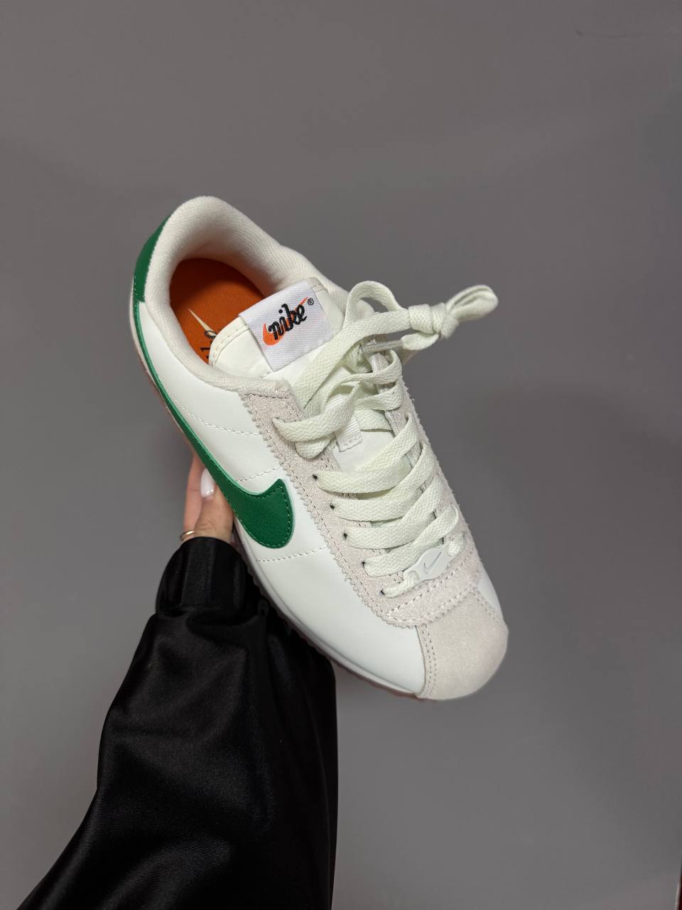 Кроссовки Nike Cortez Aloe Verde Gum выполнены в белом цвете с зеленым логотипом, который привлекает внимание. Верх кроссовок из кожи, что делает их износостойкими и стильными на вид. Кроссовки Кортез подойдут под повседневную одежду и подарят комфорт на протяжении всего дня.