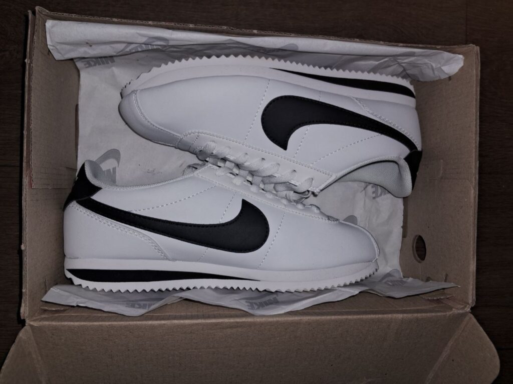 Данная модель выполнена в белом цвете с черным логотипом, который привлекает внимание. Верх кроссовок кожаный, что делает их износостойкими. Кроссовки Кортез подойдут под повседневный образ и дадут комфорт на протяжении всего дня.