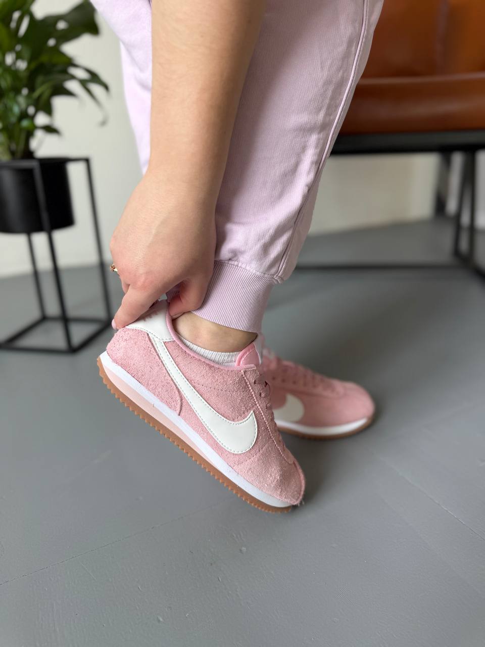 Кроссовки Nike Cortez Vintage Suede Pink выполнены в розовом цвете с белым логотипом, который привлекает внимание. Верх кроссовок изготовлен из замши, что делает их стильными на вид. Кроссовки Кортез подойдут под повседневную одежду и подарят комфорт на протяжении всего дня.