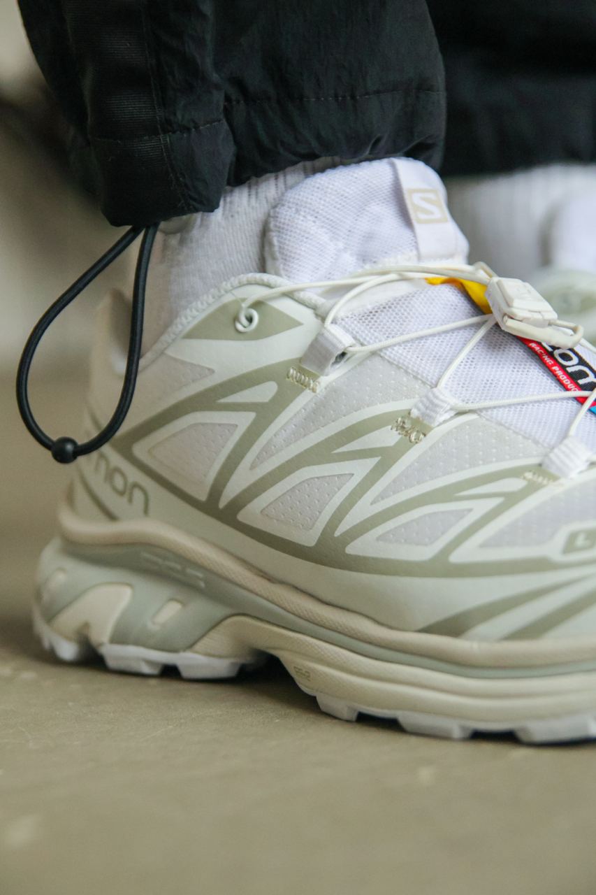 Кроссовки Salomon Xt-6 White Lunar Rock сочетают минимализм и функциональность. Верх из износостойкой комбинированной синтетики и сетки обеспечивает долговечность и отличную вентиляцию, а фирменная система стабилизации Agile Chassis и промежуточная подошва EVA создают уверенную посадку и мягкую амортизацию, что особо актуально для любителей длительных прогулок по различным поверхностям.