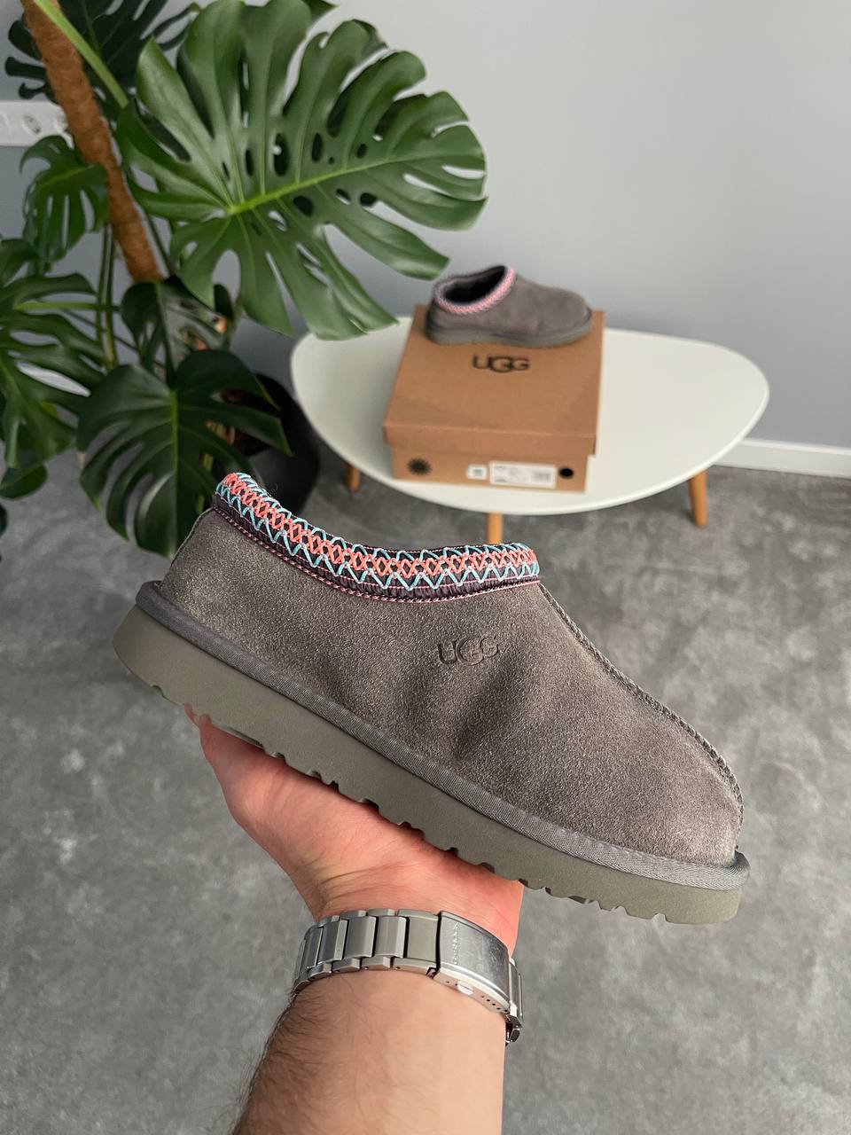 UGG Tasman Slipper Dark Grey — это тёплые тапочки изготовленные из замши и фирменной окантовкой Tasman. Мягкая шерстяная подкладка обеспечивает комфорт и тепло, а лёгкая амортизирующая подошва Treadlite делает модель удобной не только для дома но и для прогулки на улице.