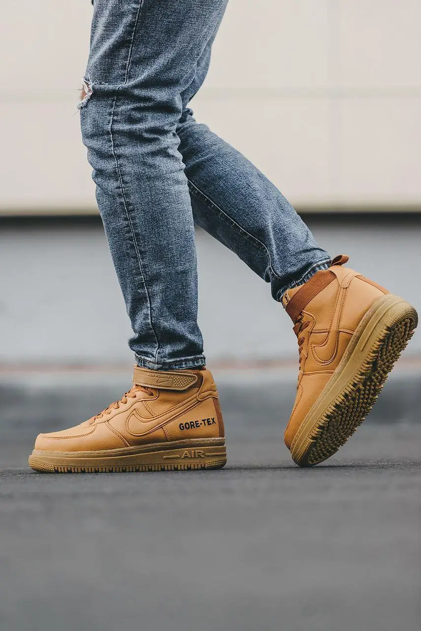 Кросівки Nike Air Force 1 High Gore-Tex Boot “Flax” відмінно підійдуть для повсякденного носіння в холодну погоду.