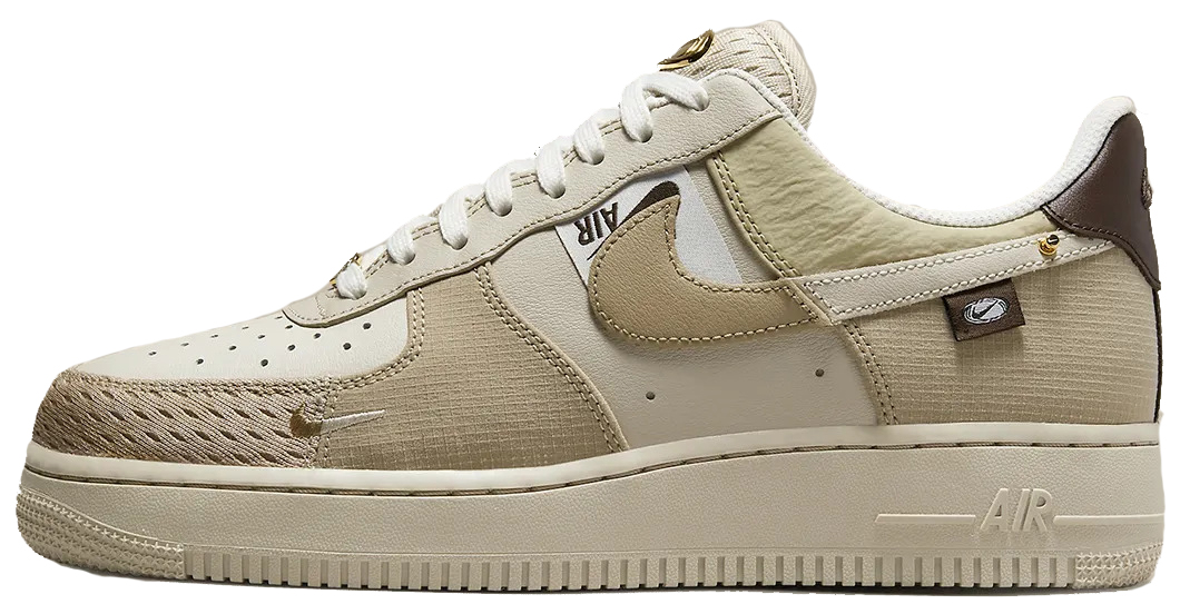Кросівки Nike Air Force 1 Low “Tan Bling” мають шкіряний верх з текстильними вставками, підошва гумова з технологією Air. У цьому взутті можна зустріти людину на вулиці в будь-яку погоду, оскільки воно універсальне, але найчастіше в демісезон. Модель Air Force є однією з найпопулярніших у бренда Nike. Все завдяки їхньому стильному зовнішньому вигляду, який не втратив своєї актуальності за багато років, а також комфортності. Ці кросівки відмінно підійдуть для повсякденного носіння.