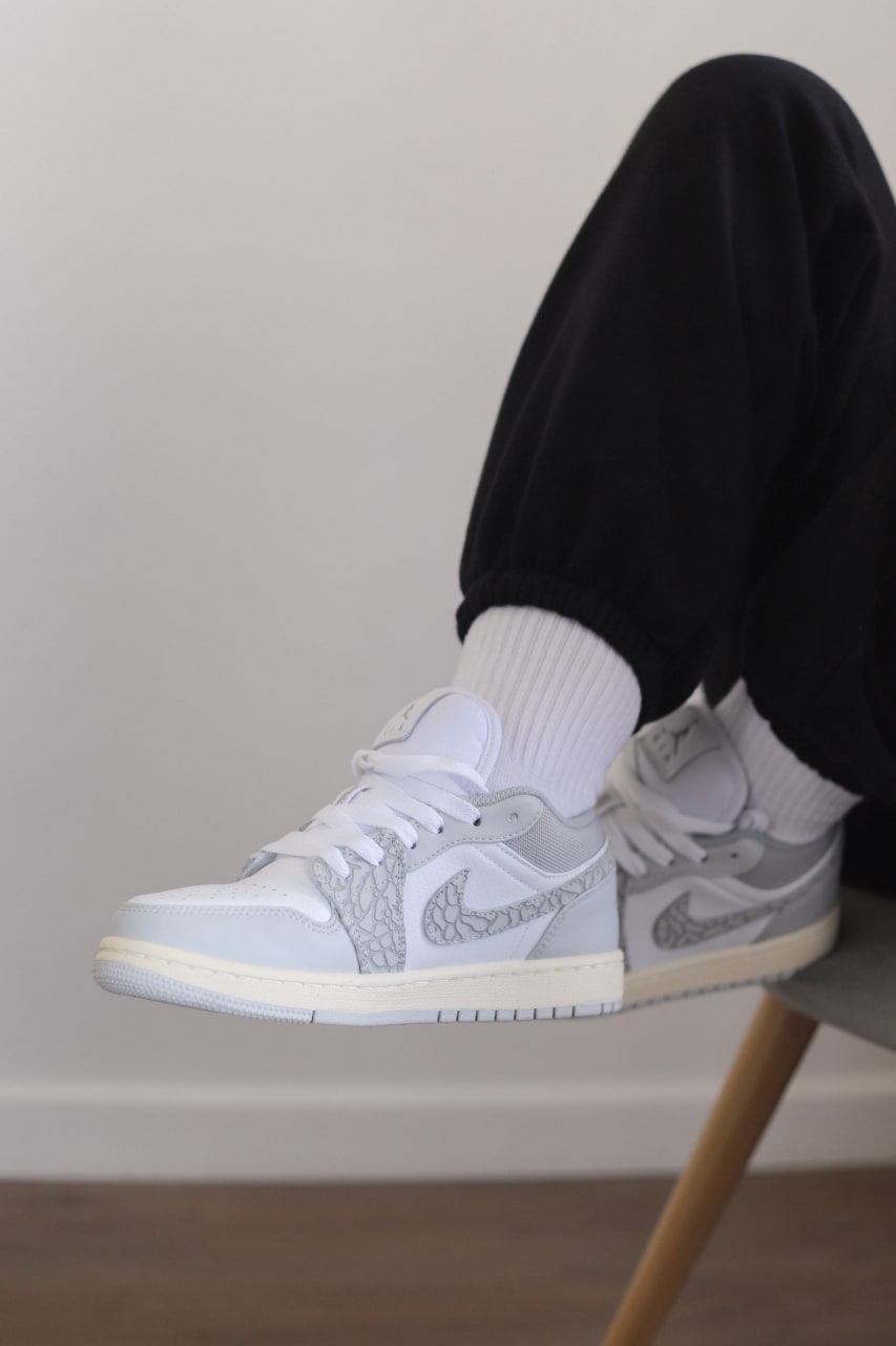 Кросівки Nike Air Jordan 1 Low “Elephant Print” легендарне взуття для гри в баскетбол, яке все частіше можна зустріти на вулиці. Модель давно перестала бути суто спортивною і дедалі більше людей використовують її як повсякденну. Верх виконаний зі шкіри, гумова підошва з технологією Air, для підвищення комфорту.
