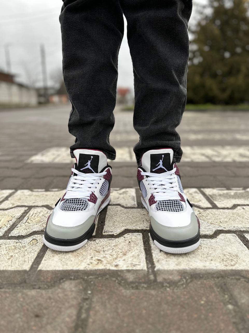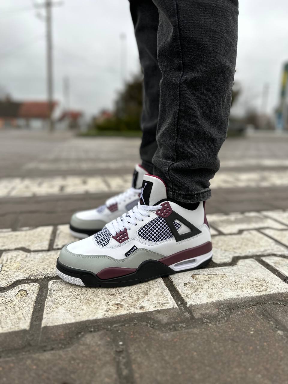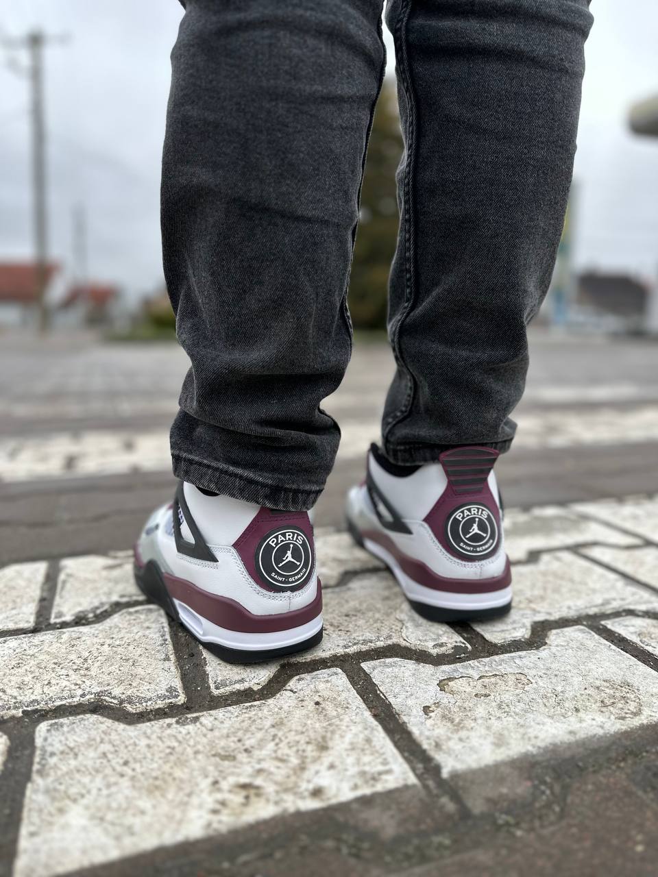 Кросівки Nike Air Jordan 4 Retro “PSG” – це унікальна версія культових кросівок, створена в колаборації з футбольним клубом Paris Saint-Germain. Основний колір моделі Джордан 4 ПСЖ — білий із бордовими, чорними і сіруватими елементами, які є фірмовими кольорами PSG. Верх виготовлено зі шкіри та текстилю, що робить кросівки стильними та практичними.