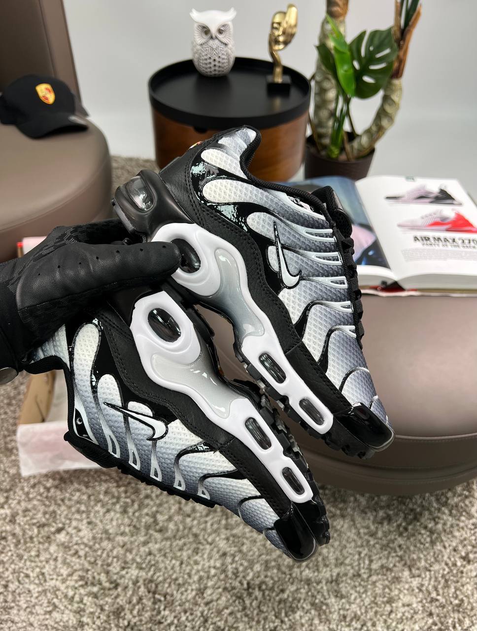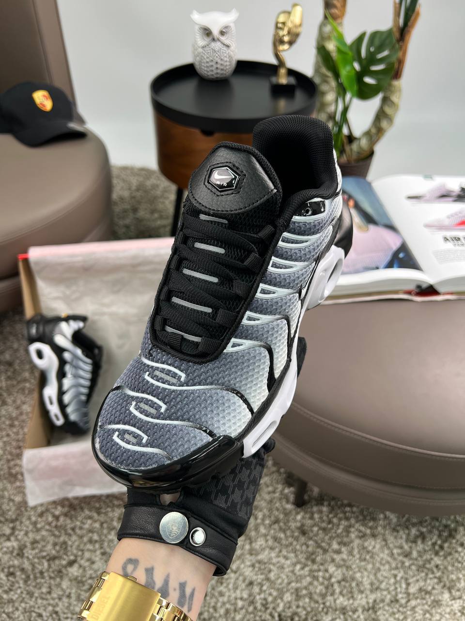 Кросівки Nike Air Max TN Black Silver, створені з якісних матеріалів, таких як текстиль, гума та шкіра, відрізняються ребристою структурою. Вони універсальні, підходять практично під будь-який стиль, зберігаючи при цьому свої спортивні якості. Технології, які застосовані при виготовленні цього взуття, дозволяють комфортно почуватися під час тренувань та при повсякденному використанні.